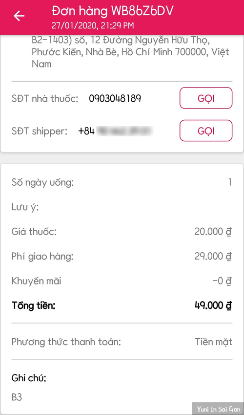 내가 주문한 약의 가격은 2만동(1000원), 배달료는 3만5000동(1800원), 기성의약품 가격은 그 나라의 경제력에 따라 차등 책정된다는 말을 들은적이 있는데 약값은 진짜 오지게 싸네. 'Dang tim shipper'는 배달할 기사를 찾고 있다는 문구, 아무래도 고비엣이나 그랩기사가 올 것 같은 느낌적인 느낌.