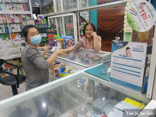 사실 베트남인들에게 병원보다는 약국이 더 친숙하다. 사립병원은 병원비가 턱없이 비싸기도 하고 사회보험이 적용되는 국립병원은 내원한 환자가 너무 많아 대기시간이 매우 긴편이다. 따라서 주 이동수단으로서 오토바이를 이용하는 베트남인들은 골절상만 아니라면 가벼운 찰과상 정도는 인근 약국을 들려 간단한 드레싱 처치를 받기도 한다. 혈압재는거 정도야 아무것도 아닌거지.