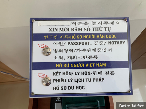 한국인은 위버튼을, 베트남인은 아래버튼을 누르면 된다. 이건 '베트남업무냐 한국업무냐'에 따른 순번발행기지 한국인 서류라고 꼭 한국인을 만날 수 있는 것은 아니다. 나의 경우 한국어를 할줄아는 베트남인이 내 민원을 처리했다.