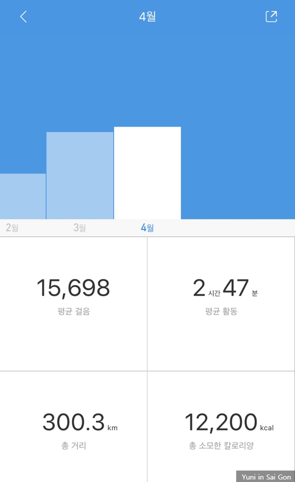 위 사진에는 첨부되지 않았으나 걷기는 5월까지 꾸준히 진행했다. 많이 걸을땐 보다시피 하루 3만보를 걷기도 했으며 평균 15000~20000보를 채우기 위해 밤낮으로 걸었다. 내가 느낀 걷기의 효과는 다음과 같다.