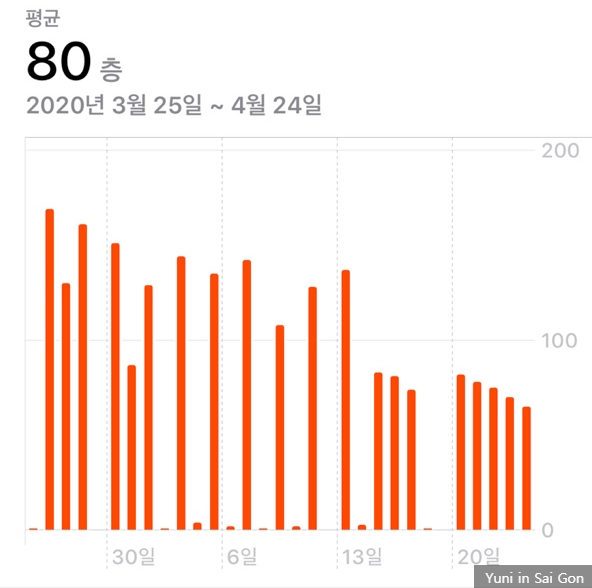 앞서 말했지만 필자는 '높은 운동강도=체중감량 속도'로 인식하고 있었기에 가급적 내 몸을 혹사시키는데 집중했다. 첫주에는 하루 160층씩 매일 계단을 올랐지만 이내 무릎에 문제가 생겨 100층씩 격일로 오르기도 했었다. 결국 이것도 무릎에 많은 부담이 실려 그만 두기로 했다. 명심할 것은 우리가 탄탄한 근육을 가진 김종국이 아니라 그냥 지방 많은 비만인이라는 사실이다.