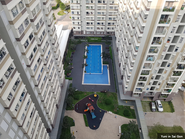베트남 아파트들은 대부분 이렇게 야외수영장을 보유하고 있는데요. 이 역시 무료로 사용할 수 있으며 규모가 크진 않지만 운영시간내내 안전요원이 상주하고 있고 매주 화요일 정기적인 소독을 통해 적합한 수질기준을 충족시키고 있습니다. 사실 수영장은 눈으로만 봤지 단 한번도 이용해본 적은 없습니다.