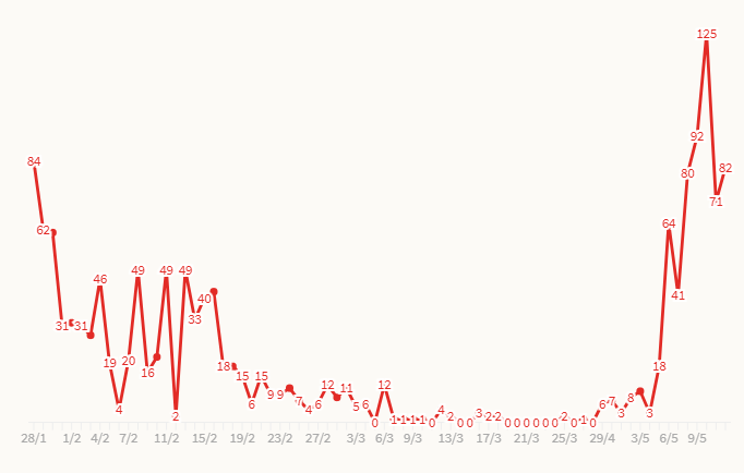각설하고 12일 베트남 코로나19 지역감염자는 82명을 기록해 4월 27일 3차 확산이 시작된 이후 지역감염사례는 전국 26개 성·시에서 611명으로 증가했습니다.