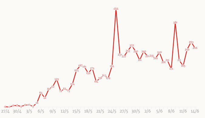 1. 6월 14일 베트남 코로나 신규 지역감염자 266명 기록