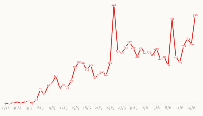1. 6월 15일 베트남 코로나 신규 지역감염자 398명 기록