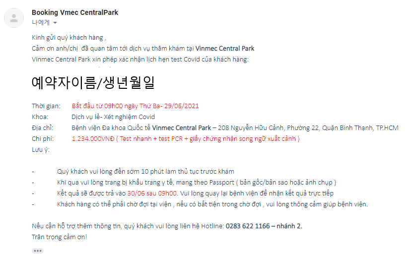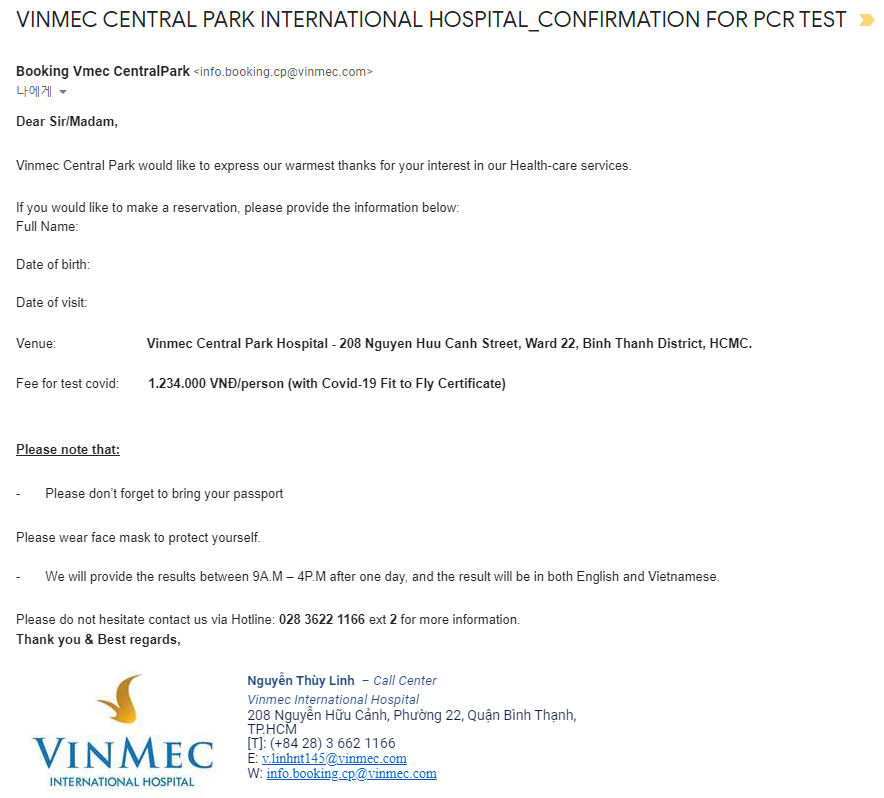 빈멕 접수처 이메일주소: Info.booking.cp@vinmec.com