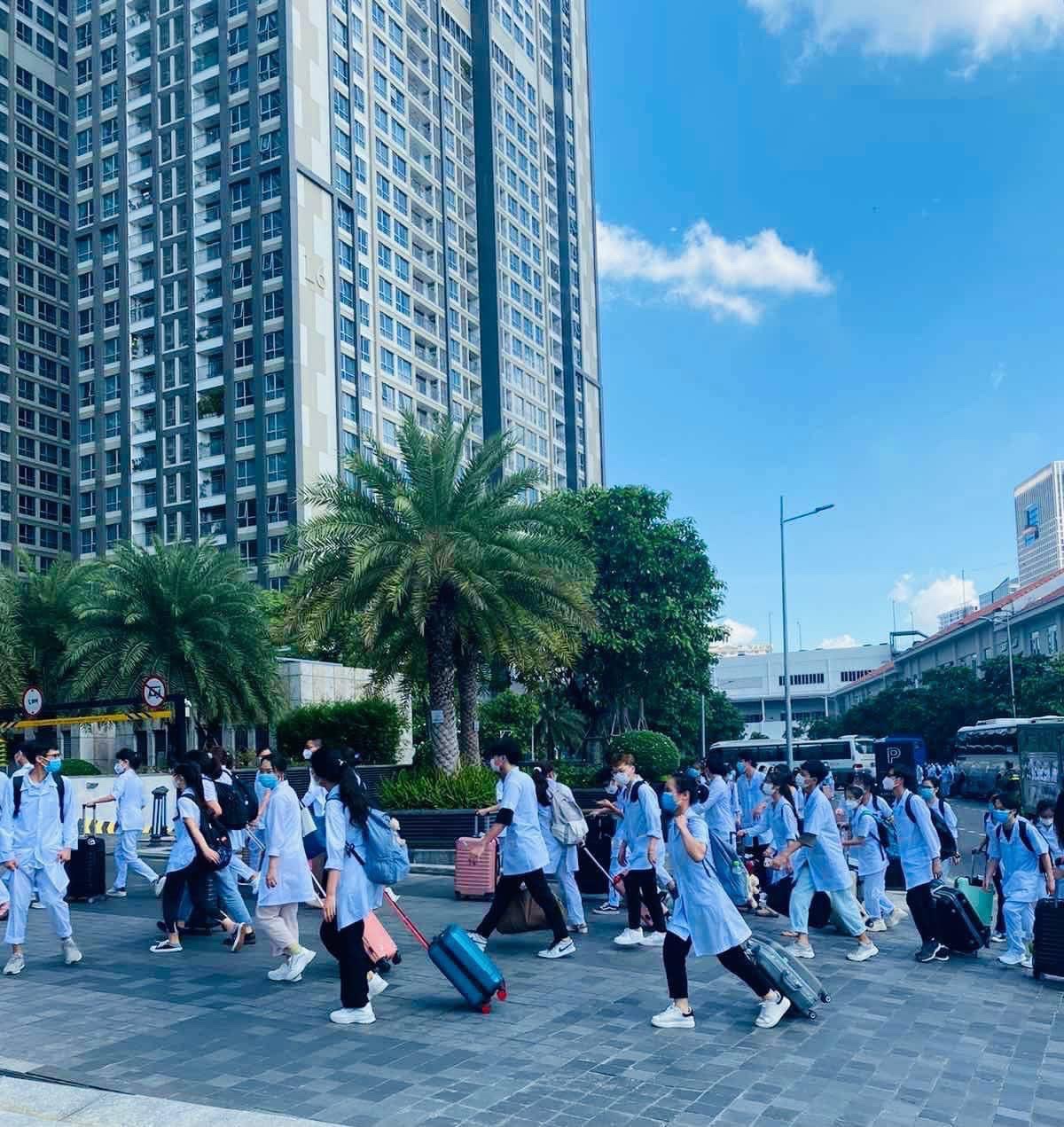 같은날 호치민 아파트 대단지인 빈홈센트럴파크에서도 전세대를 대상으로한 코로나19 전수조사가 있었는데요. 어마어마한 세대수의 원활한 검사를 진행하기 위해 북부에서 의대생 300여명이 호치민으로 지원을 내려왔다고 하네요. 맑고 푸르른 하늘아래 가운을 입고온 학생들이 참 대견하고 기특해보입니다.