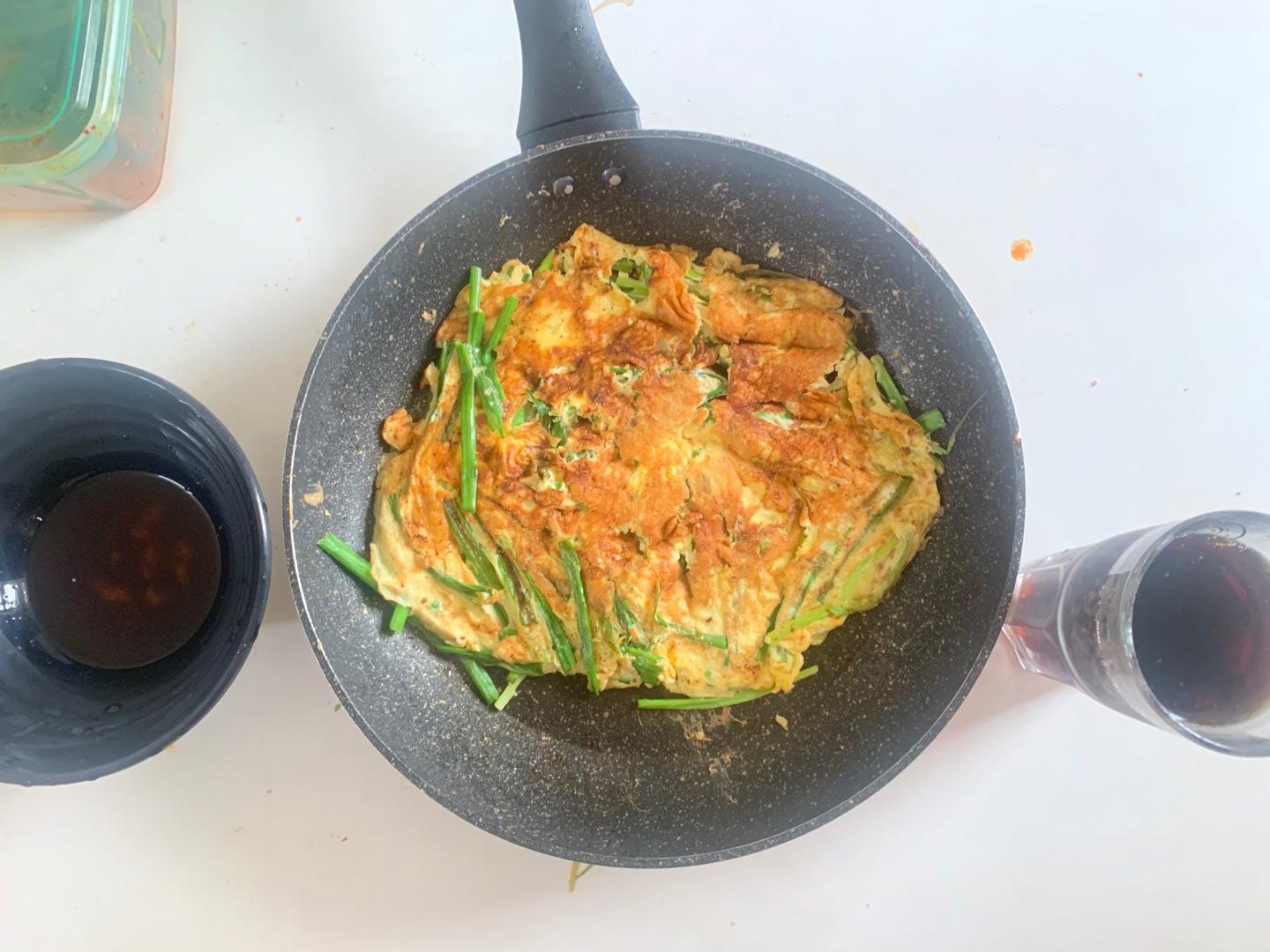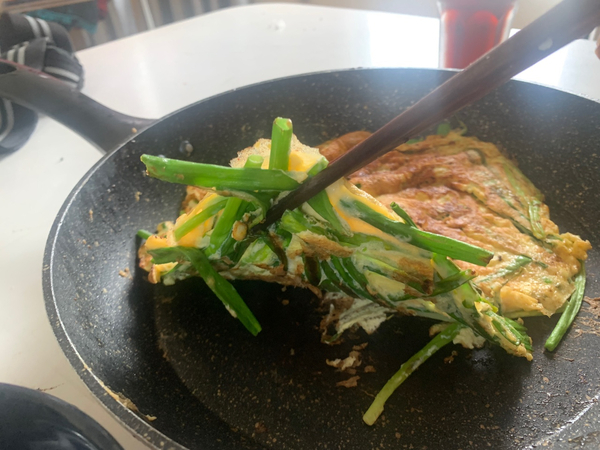 질긴 고기를 씹어대는데 너무 많은 칼로리를 소비한 탓인지.. 비도 오고 간만에 파전도 땡기고해서 계란파전을 부쳐먹었습니다. 계란 4개 넣었는데 전분기가 없어 밀가루 파전마냥 바삭한 맛은 없었지만 그래도 부들부들한게 또 색다른 매력이더군요.