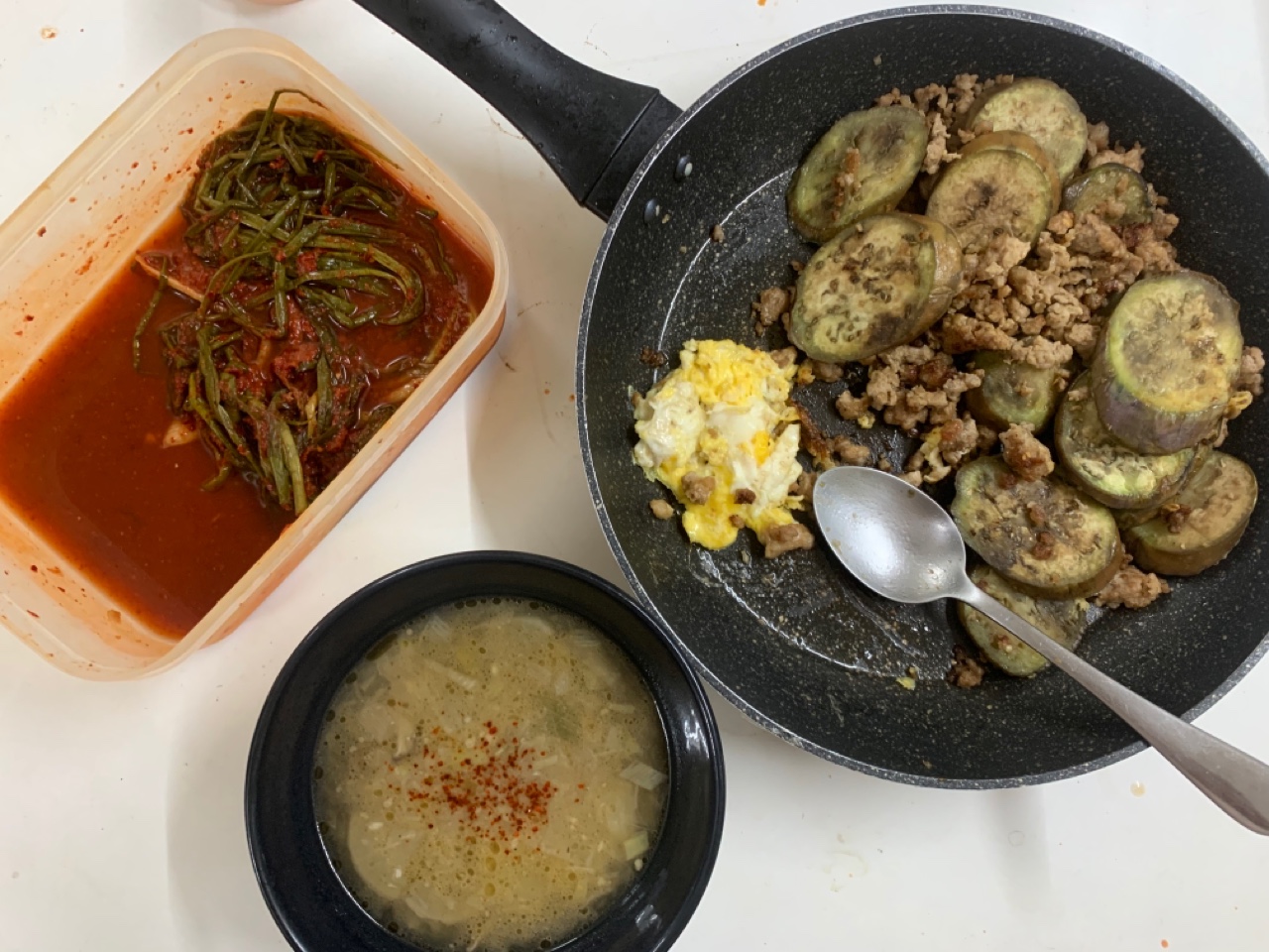 26일 메인식사는 돼지가지볶음입니다. 키토제닉 자체는 제게 잘맞는 식단인데.. 이거 하다보면서 느꼈습니다. 처음 소고기를 먹는 날은 고급진 느끼함에 입꼬리가 절로 올라가는데 다음날도 소고기를 먹게되면 그 감흥이 50%로 급감하고 3일째 소고기를 먹는 날이면 차라리 단식하는게 낫지 않을까 하는 생각도 들게됩니다. 해서 뭘 해먹을까 고민하다 대충 만들어본 돼지가지볶음인데요. 돼지기름에 계란을 부쳤더니 역시 식용유 끝판왕은 라드라는 것을 다시 한번 깨닫게 된 하루였습니다. 이날 곁들인 국은 지난주 만들어뒀던 소고기뭇국입니다.