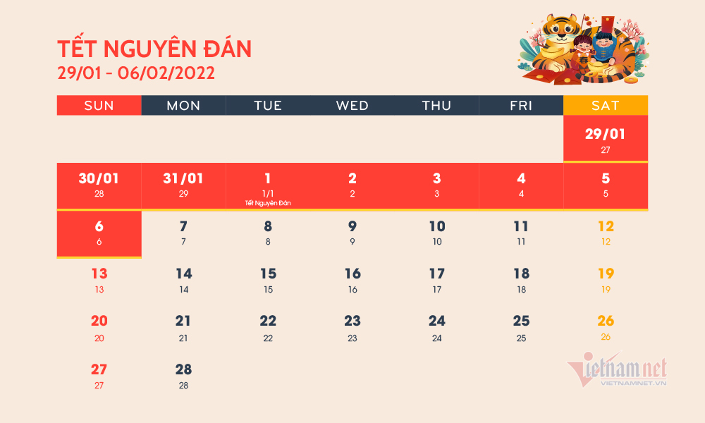 2022년 뗏연휴 일정... 9일간