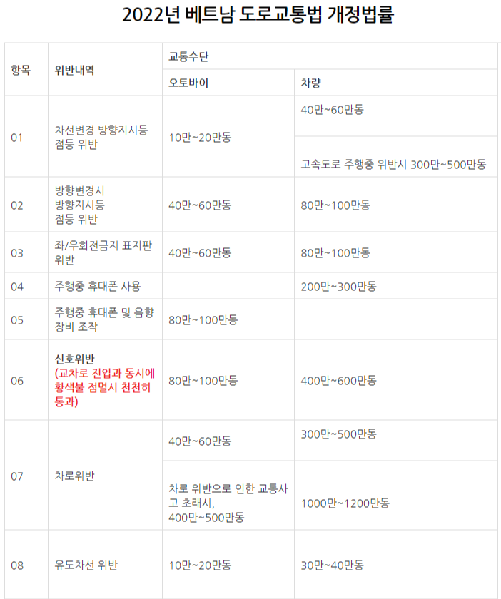 1. 2022년 베트남 도로교통법 개정법률
