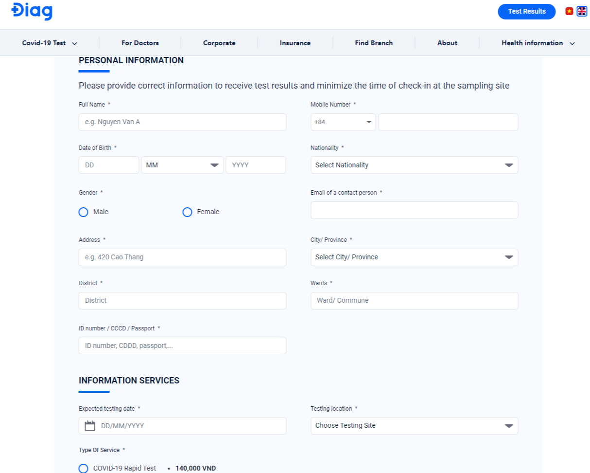 디아그는 온라인 또는 전화통화로 예약이 가능합니다만, 연휴탓인지 전화연결이 쉽지 않아 온라인으로 지인분 예약을 도와드렸습니다. 예약방법은 디아그 웹사이트 방문해 ▲여권상 영문명 ▲여권번호 ▲체류지 ▲전화번호 ▲이메일주소 등 개인정보를 기입하고 검사를 받을 지점 정도만 입력하시면 추후 입력한 전화번호와 이메일을 통해 부킹여부를 안내받으실 수 있습니다.