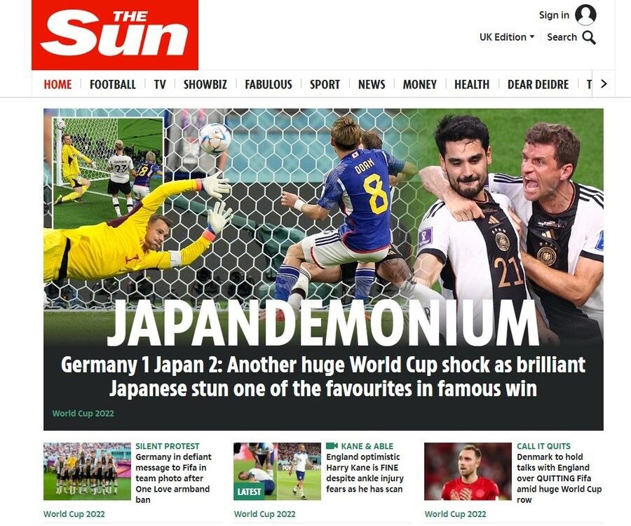 경기가 끝나자마자 영국 한 매체에 올라온 재팬데모니움...ㅋ 찌라시 소리 듣지만 더선이 제목은 참 잘뽑습니다.