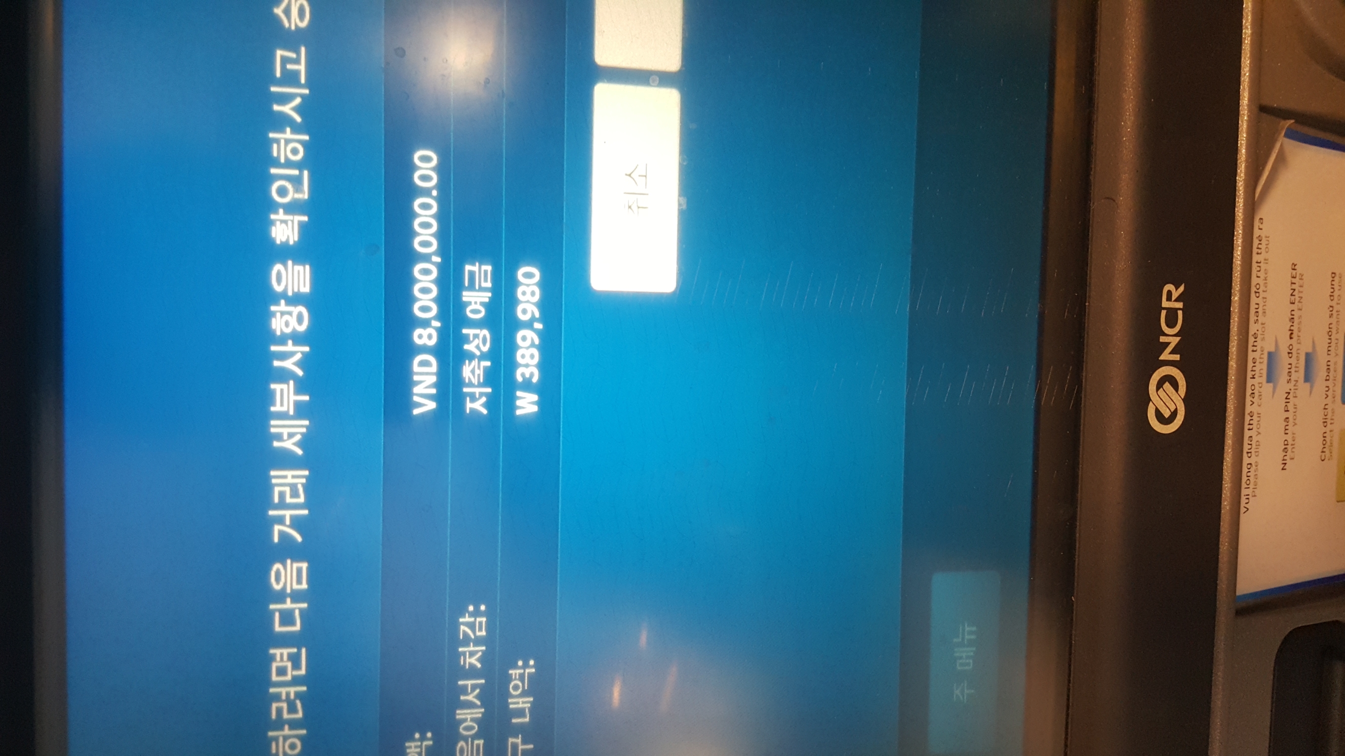1회출금한도 800만동(약40여만원상당)