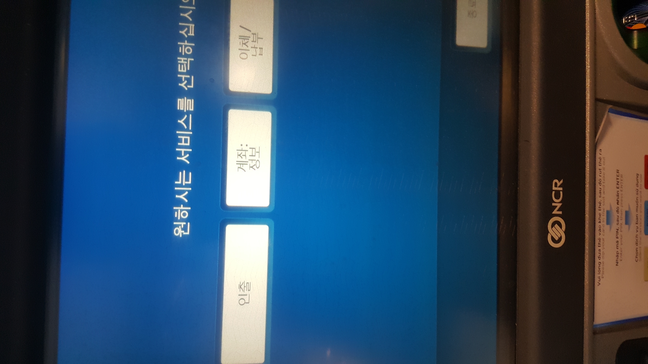 출금 방법은 일단 카드를 삽입하는 것으로 시작합니다.