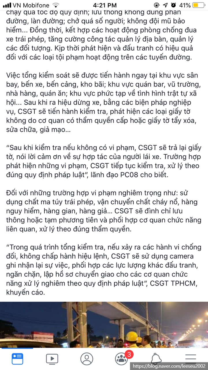 아마 좀 당황하셨을 것도 같은데요. 해당 글의 출처는 베트남 교통국이나, 원본을 캡쳐해오자니,