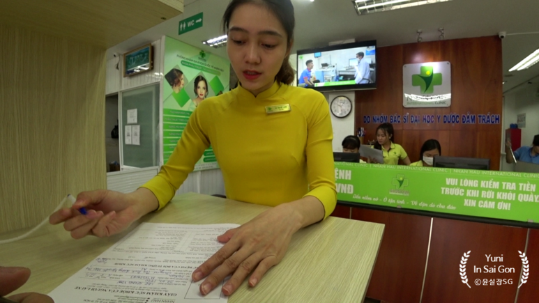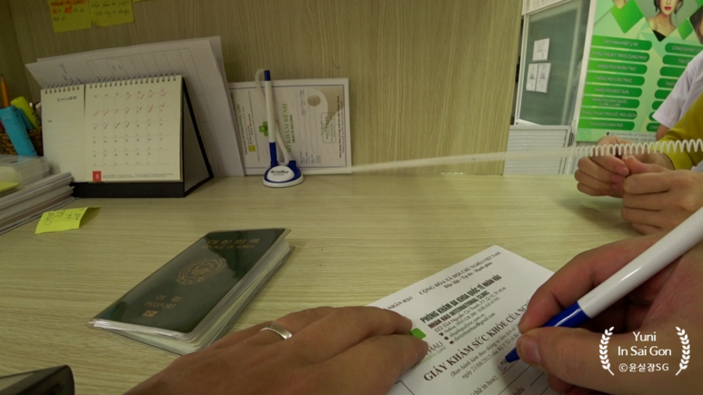 건강검진이라 하니, 좀 많이 거창해보이지만, 사실은 베트남어를 번역해서 옮기다보니, 건강검진이 된 것이지, 그렇게 거창한건 아닙니다. 한국어엔 "신체검사" 정도로 비교적 단순한 검사를 일컬을 수 있는 단어가 있지만, 베트남에 오래 살아서인지, 요즘은 한국어도 제대로 안나옵니다. 큰일났네요. 아무튼 카운터에 가셔서 신체검사를 받으러 왔다고 하면 뒤에 있는 간이 테이블에서 검진용 소책자에 신상정보를 기입하라고 안내해줍니다. 이 역시 이름과, 여권번호, 생년월일, 사는 곳 주소정도만 적어주면 끝납니다. 기입이 제대로 끝났다면, 저 아가씨가 "가족력이 있는 병이 있냐? 현재 병이 있냐? 마약하냐? 애인있냐?" 등등 물어볼텐데, 해당사항 없을 시, "Không" 이라고 짧게 한글자로만 대답하시면 됩니다. 해당 단어는 "아니다,없다" 정도의 부정문입니다.