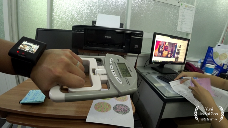 그 다음 이동한 장소에서는 시력검사와 함께, 악력테스트, 색약/맹 테스트가 이뤄집니다. 궁금했던건 전 베트남어 ABCD~Z까지의 알파벳 독음을 모릅니다. 끽해봐야 아,베,쎄,데,,,,익(X) 정도인데, 저때 테스트는 제대로 된건지 좀 궁금하긴 합니다. 알파벳을 한국어 버전 영어발음을 읽었으니, 그냥 답하면 답하는대로 맞다고 쳤을 수도 있겠군요..